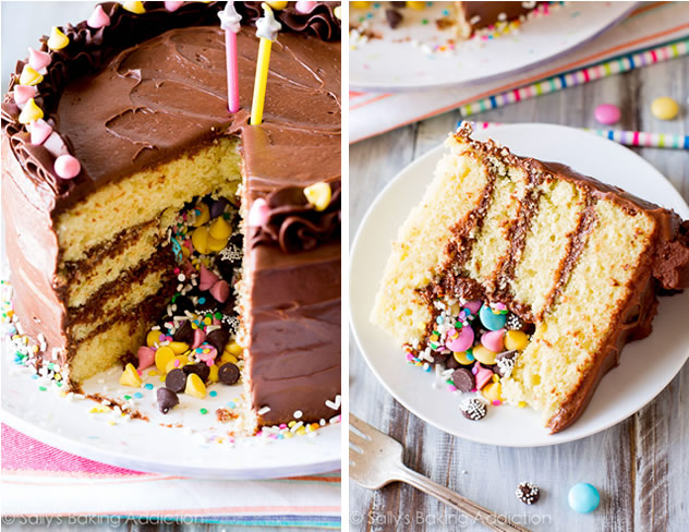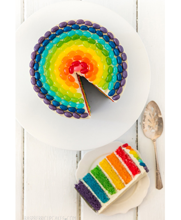 Bright colors from a rainbow cake are sure to bring feelings of happiness and add energy to a party. Since it can be prepared in a number of sizes, this cake offers versatility for any birthday party. For an intimate family party, it can be baked in a small round shape. For a larger event, it can be stacked in multiple tiers or created in a bigger pan. Besides decorating the outside in technicolor fondant, the real surprise is revealed after the cake is cut. Inside, there are rainbow layers bursting with colors.