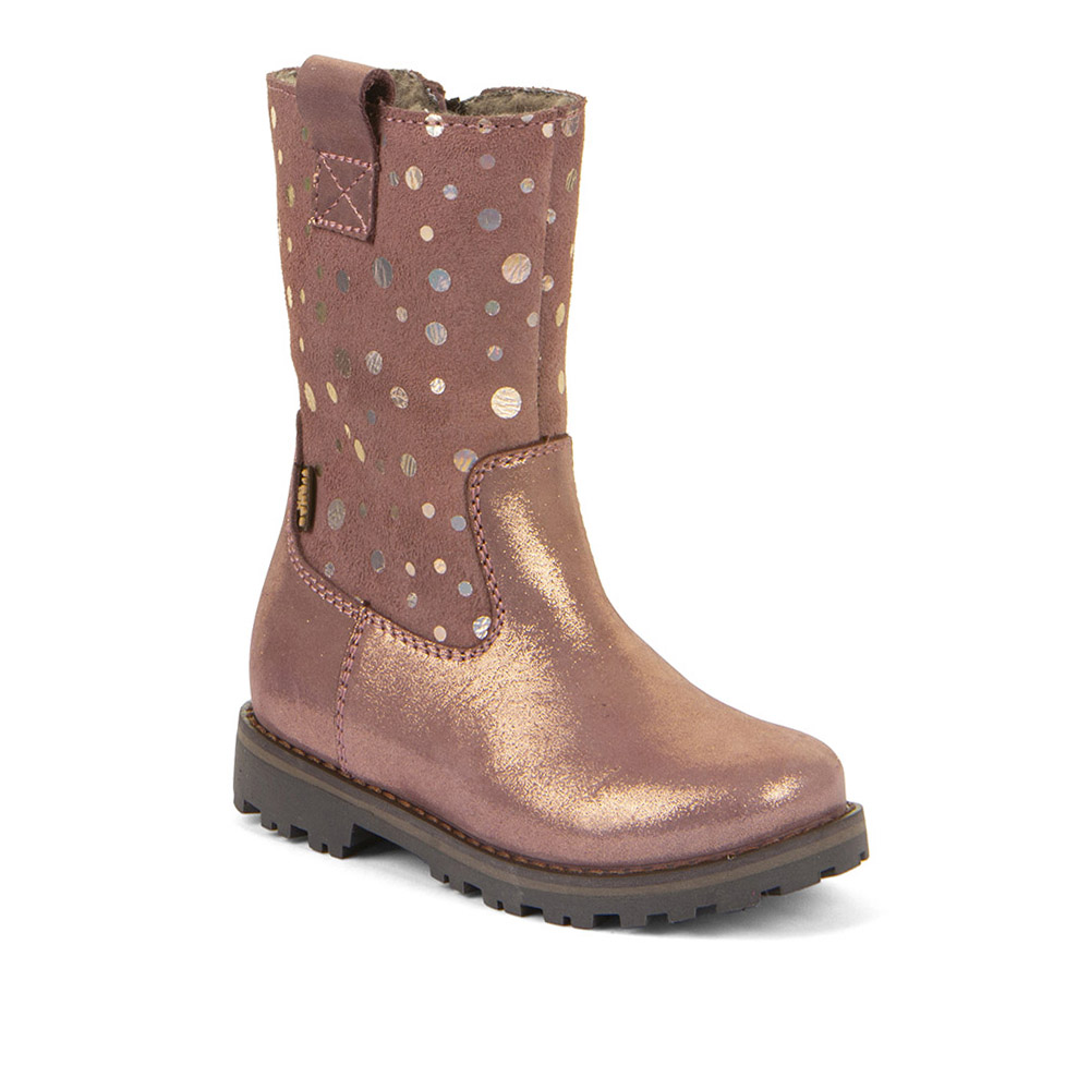 Dětská voděodolná botaSložení:1) Vrchní materiál - voděodpudivá kůže (nubuk)2) Podšívka - vlna3) Vložka - vlna4) Podešev - TRŠířka: pro všechny šířky nohouVodoodpudivé a voděodolné. Zip na vnitřní straně. Bez chromu VI.