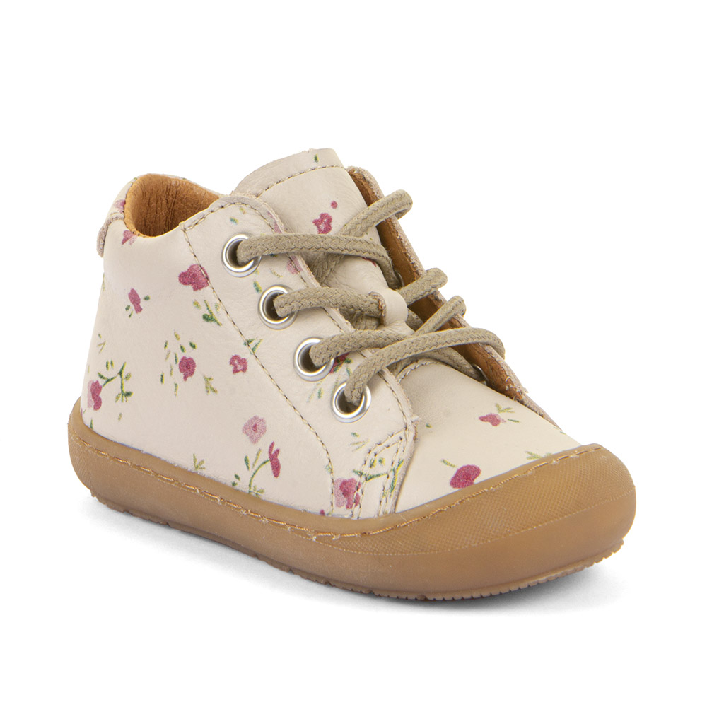 BørneskoSammensætning:1) overmateriale – læder2) for – kromfrit læder3) indersål – mikrofiber4) ydersål – TRBredde: til smalle og normale fødderUdtagelig antibakteriel indersål i mikrofiber. Uden krom VI.
