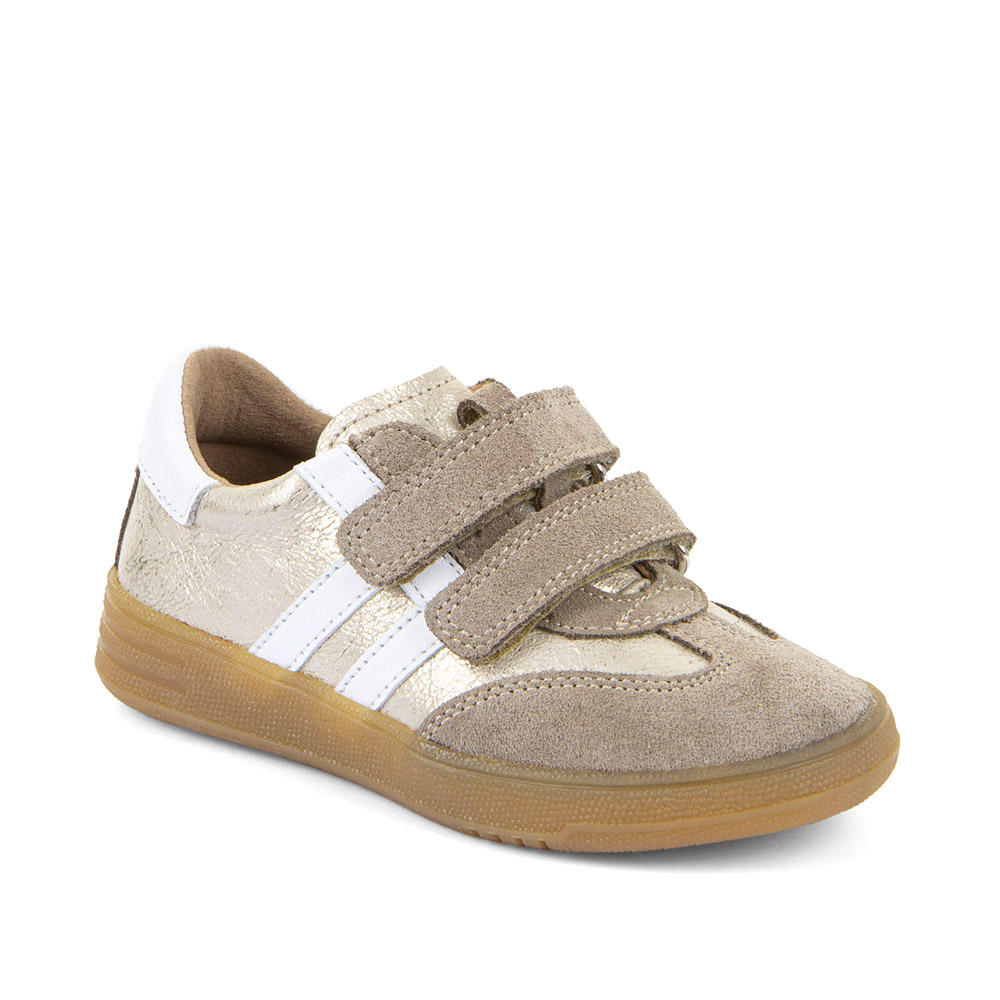 BørneskoSammensætning:1) overmateriale – læder/vandafvisende læder (ruskind)2) for – kromfrit læder3) indersål – mikrofiber4) ydersål – TRBredde: til smalle og normale fødderUdtagelig antibakteriel indersål i mikrofiber. Uden krom VI.