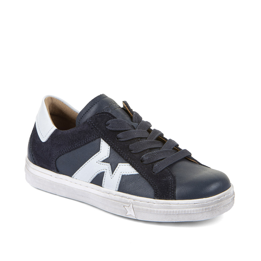 BørneskoSammensætning:1) overmateriale – læder2) for – kromfrit læder3) indersål – mikrofiber4) ydersål – TRUniversal pasform – kan justeres til alle fodbredderUdtagelig antibakteriel indersål i mikrofiber. Lynlås på indersiden. Uden krom VI.
