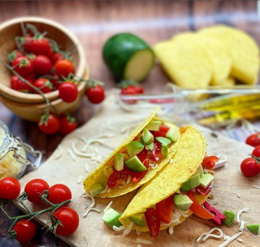 Mini-Tacos – In eine Tortilla gewickeltes Gemüse ist ideal für jedes Mitglied. Spielen Sie mit den Zutaten und stellen Sie für jedes Mitglied separat eine Kombination zusammen. Für die Kleinen passt die Kombination aus Trockenfleisch, hausgemachter Salami, Tomate und grünem Salat immer.