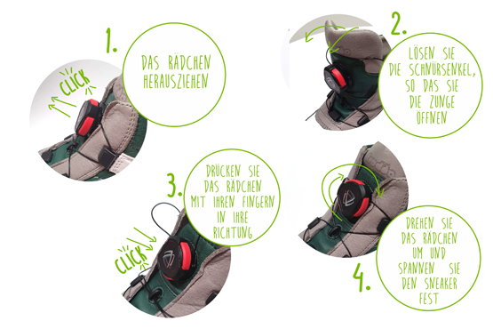 Die innovativen Turnschuhe haben ein neues Sicherheitsverschlusssystem für einfaches Schuhanziehen ohne Schnürsenkel. Das Anziehen ist einfach und sicher. Es gibt keine Schnürsenkel binden und Klettband Lössung während des Spiels . Mit dem neuen Schließsystem können Kleinkinder selbstständig und sicher Turnschuhe anziehen und alle Aktivitäten ungehiendert genießen.
