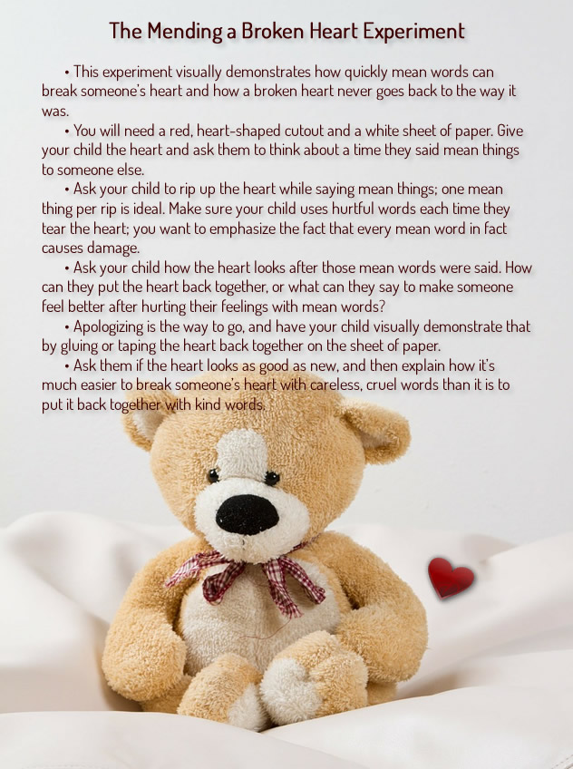 Most kids are raised to understand that physically hurting others is wrong. All too often, though, parents fail to drive home how hurtful words can be. Understanding this is a crucial part of becoming an empathetic person, and there are a few experiments you can do to impart this lesson to your child in a memorable way.