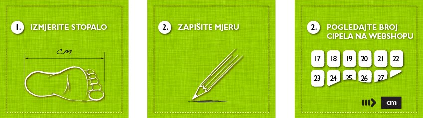 Duljina u cm navedena na web shop-u je duljina unutarnjeg gazišta uvećana za 12 mm (kod zatvorene obuće), odnosno za 6 mm (kod otvorene obuće), koliko je potrebno za pravilan položaj te zdrav rast i razvoj stopala unutar cipele.
